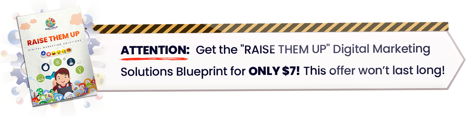 If fact, if you don't love "RAISE THEM UP" Digital Marketing Solutions - I'll even give you a full refund PLUS let you keep the blueprint!